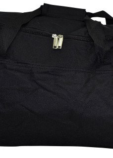 Polyester with PVC Back Coating 600D/300D. Large U shaped double zippered main compartment. Zippered end compartment. Two carry handles with Velcro closure. Mesh pocket on one side. Adjustable/ detachable webbing shoulder strap with padding. Studded base for durability.