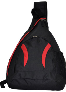 Polyester with PVC backing 600D. Padded back with air mesh for comfort. Zippered main ompartment with contrast stripe cover the zipper. Zippered front compartment with contrast contour panel. Adjustable and padded air mesh shoulder strap. Mobile/ MP3 Player pocket on the shoulder strap. Side mesh pocket for water bottle.