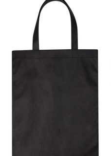 80gsm, Non Woven Polypropylene Print Area: 240 x 240mm Description: Self-fabric overlocked seams. Short carry handles.
