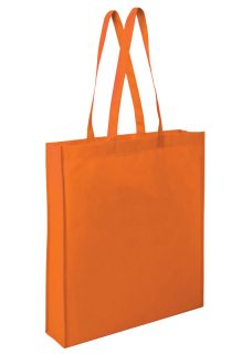 80gsm, Non Woven Polypropylene Print Area: 240 x 240mm. Non woven tote with carry handles. No gusset.