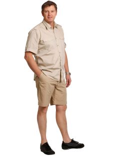 98% Cotton, 2% Elastane. Flat Front, Two Side Pockets, One Concealed Front Pocket, and Two Back Pockets.